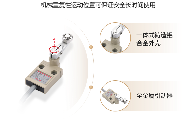 ? CDLX6HM防水限位開關(guān)集性能和顏值于一體,可完美控制運(yùn)動(dòng)機(jī)構(gòu)的行程、變換運(yùn)動(dòng)方向及速度,憑借超高性能輕松應(yīng)對(duì)各類惡劣環(huán)境,適用于 50Hz/60Hz額定工作電壓至AC250V和直流電壓至DC30V的同極性使用的電氣線路。