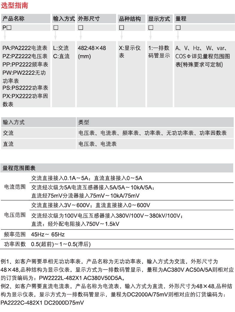 P□2222□-482X1 installed digital display electrical measuring instrument is widely used in industrial equipment, distribution panels, transmission and distribution high and low voltage switchgear, power cabinets, control cabinets, and various electronic control devices as matched instrument panel.