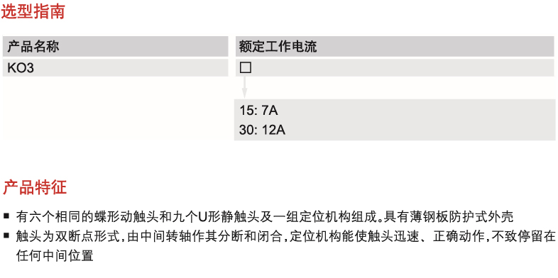 It is composed of six identical butterfly moving contacts, nine U-shaped fixed contacts and a set of positioning mechanisms. It has a thin steel plate protective shell, and the contact has double breaking points and is open or closed through an intermediate rotating shaft; the positioning mechanism can make the contact act quickly and correctly without staying in any intermediate position.