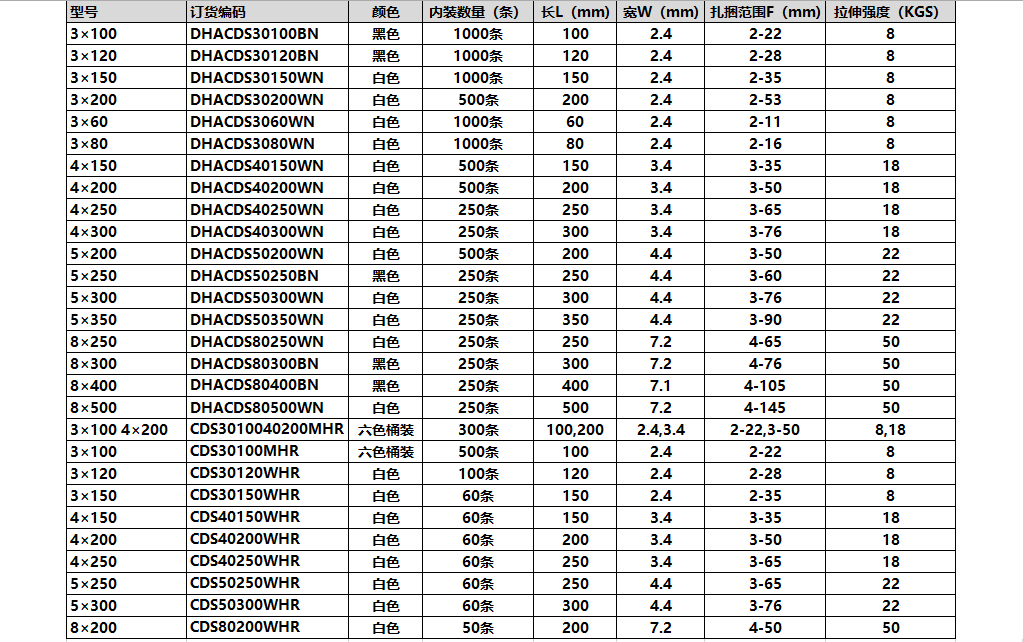 Widely used for wire harness fixation, quickly realize artistic and neat wiring harness connection Made of UL approved nylon 66 with fire rating 94V-2 With good flexibility, non-aging, high bearing capacity, convenient and economical operation The standard color is natural (white) color, and some black specifications are available