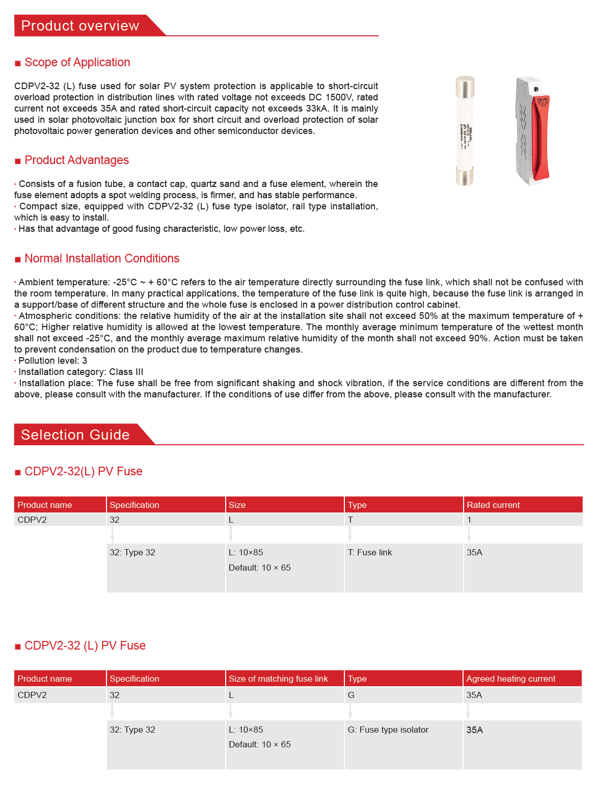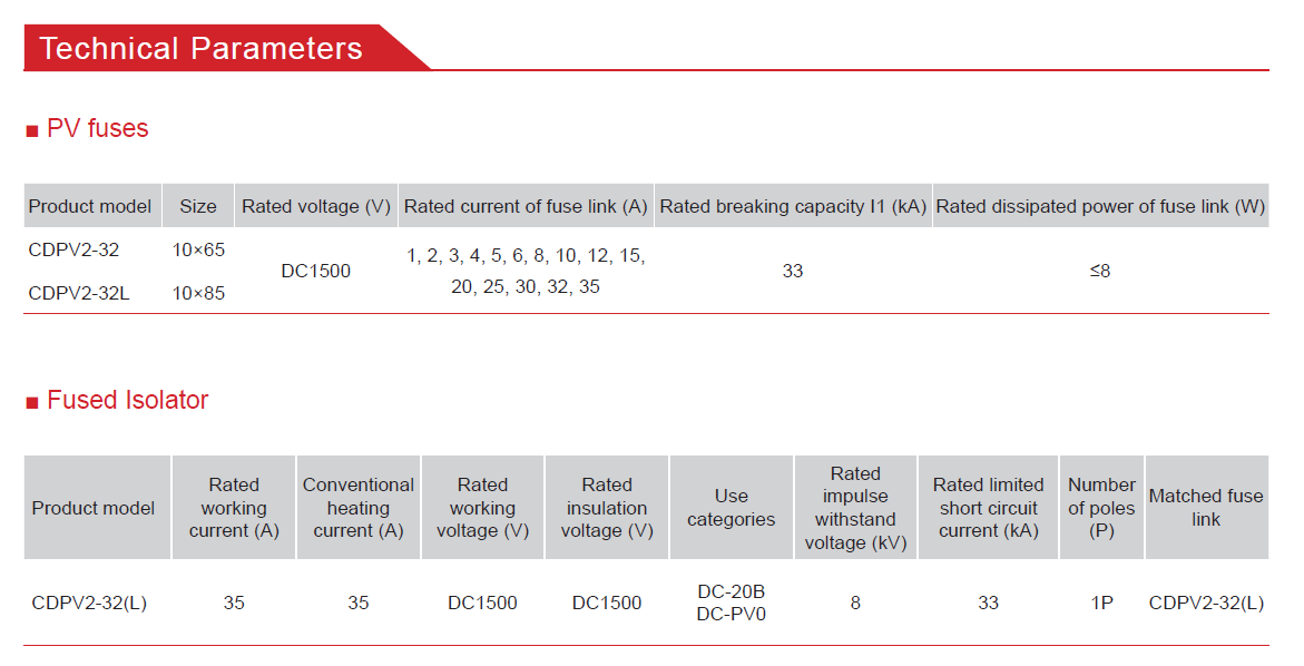 Home page >Products >Power Distribution Products >Final Distribution >Fuse >Photovoltaic Dc Fuse >CDPV2-32(L) Fuse Product For Solar Photovoltaic System Protection