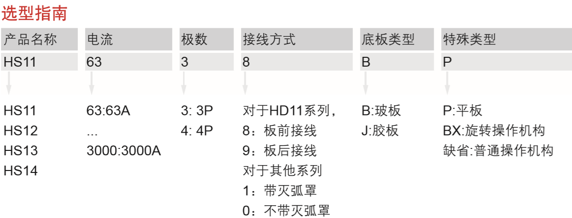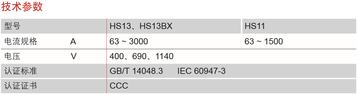 HS11, HS12, HS13, HS14 double-throw knife transfer disconnectors are suitable for complete set of AC 50Hz power distribution devices with a rated voltage 380V (690V) and below and with a rated current up to 3150A for infrequent manual connection and disconnection of circuit, or it used also as a switch disconnector.