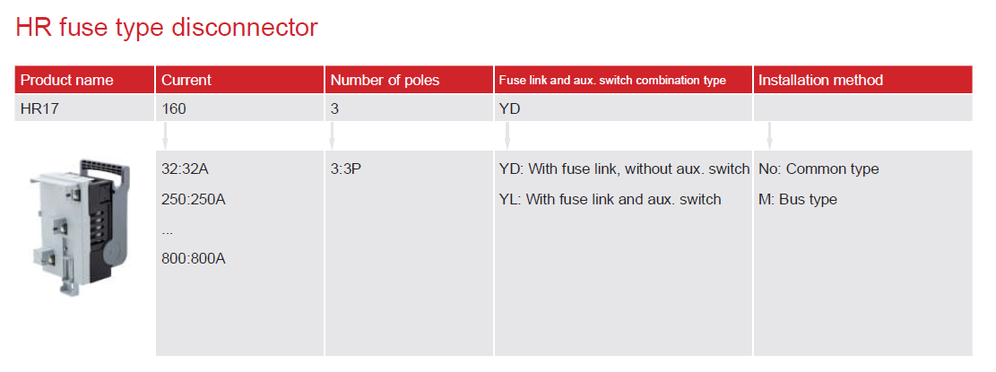 Home page >Products >Power Distribution Products >Power Distribution >Disconnectors & Knife Switches >Fuse Type Disconnector >HR17 Series Fuse Type Disconnector