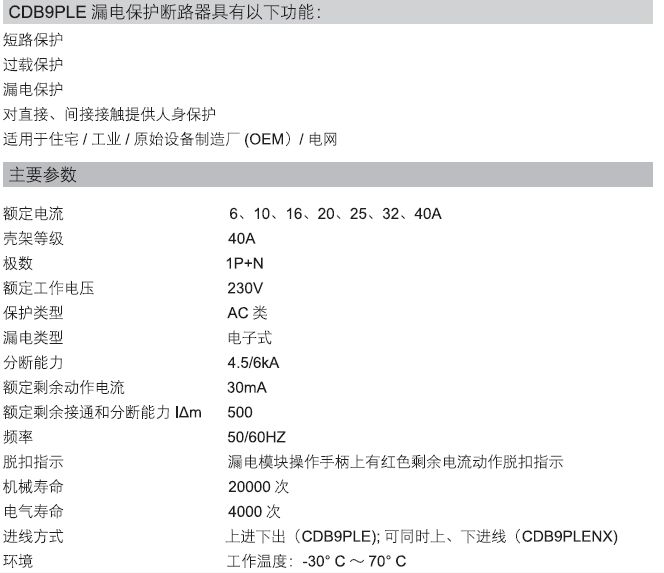 Home page >Products >Power Distribution Products >Final Distribution >Earth Leakage Protective Device >Phase + Neutral Line Earth Leakage Circuit Breaker >CDB9PLE Phase Line + Neutral Line Earth Residual Current Circuit Breaker