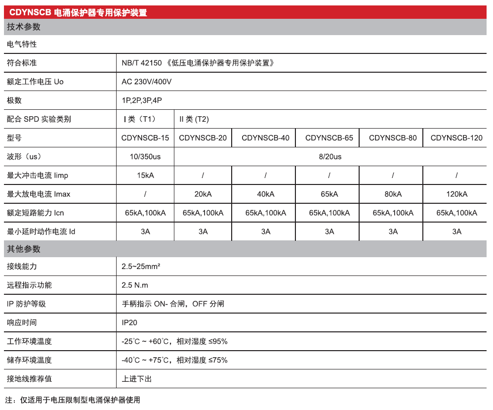 CDYNSCB series surge protector special protection device is connected in SPD loop in series to realize the function of quickly cutting off power frequency small current and high current lightning strike without trip using internal current sorting channel device. Compared with conventional backup protection devices, it has advantages of higher breaking capacity and better surge shock tolerance, and of realizing quick-cut of low short-circuit current.