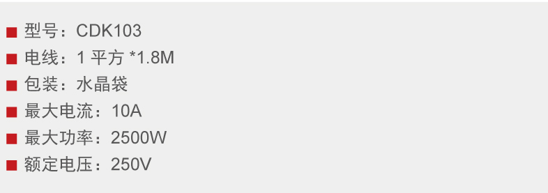 Home page >Products >Power Distribution Products >Final Distribution >Socket >(Extension Cord, Wireless, Functional) Socket >CDK 103 Extension Cord Socket (New GB)