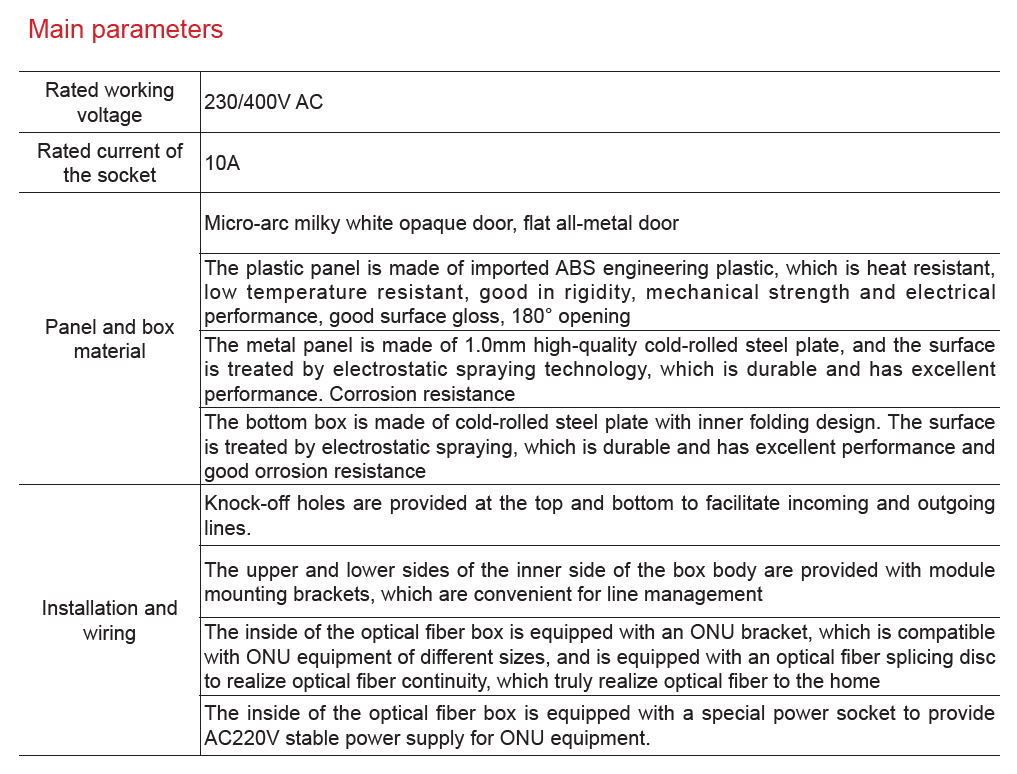 CDEN1X optical fiber-to-the-home information box is a system developed to adapt to the development of home informatization and development and to realize real home intelligence and information for unified management of the telephone, fax, TV, satellite reception, wireless optical network, and security equipment inside the home, with extremely convenient management and maintenance. It fully provides a practical solution to completely solve the problem of intelligent wiring, management, use and maintenance of the home. The purpose is to create a beautiful and comfortable "smart" information home for consumers.