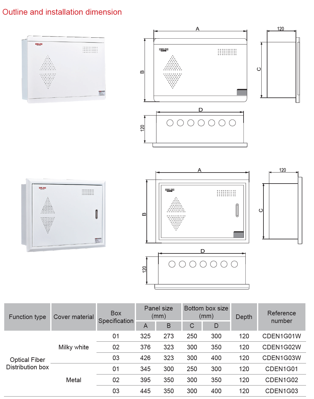 Home page >Products >Power Distribution Products >Final Distribution >Distribution Box >Information Box/fiber Box >CDEN1X Fiber Box