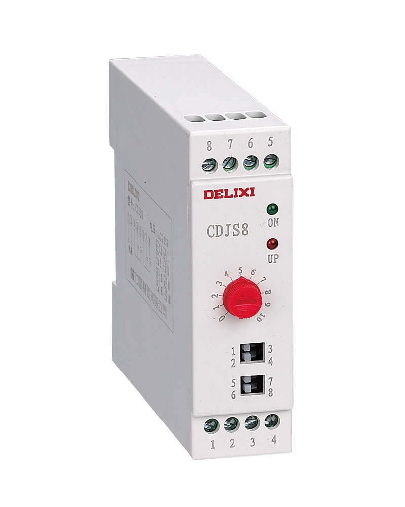 CDJS18 series time relay is suitable for the automatic control circuit with a rated control power supply voltage AC380V and below as a time control element to connect or disconnect circuits according to the predetermined time. CDJS18 is installed on a 35.5mm standard rail; CDJS18 series time relay has three delay methods: CDJS18 (interval delay), CDJS18-A (off delay), and CDJS18-B (power-on delay).