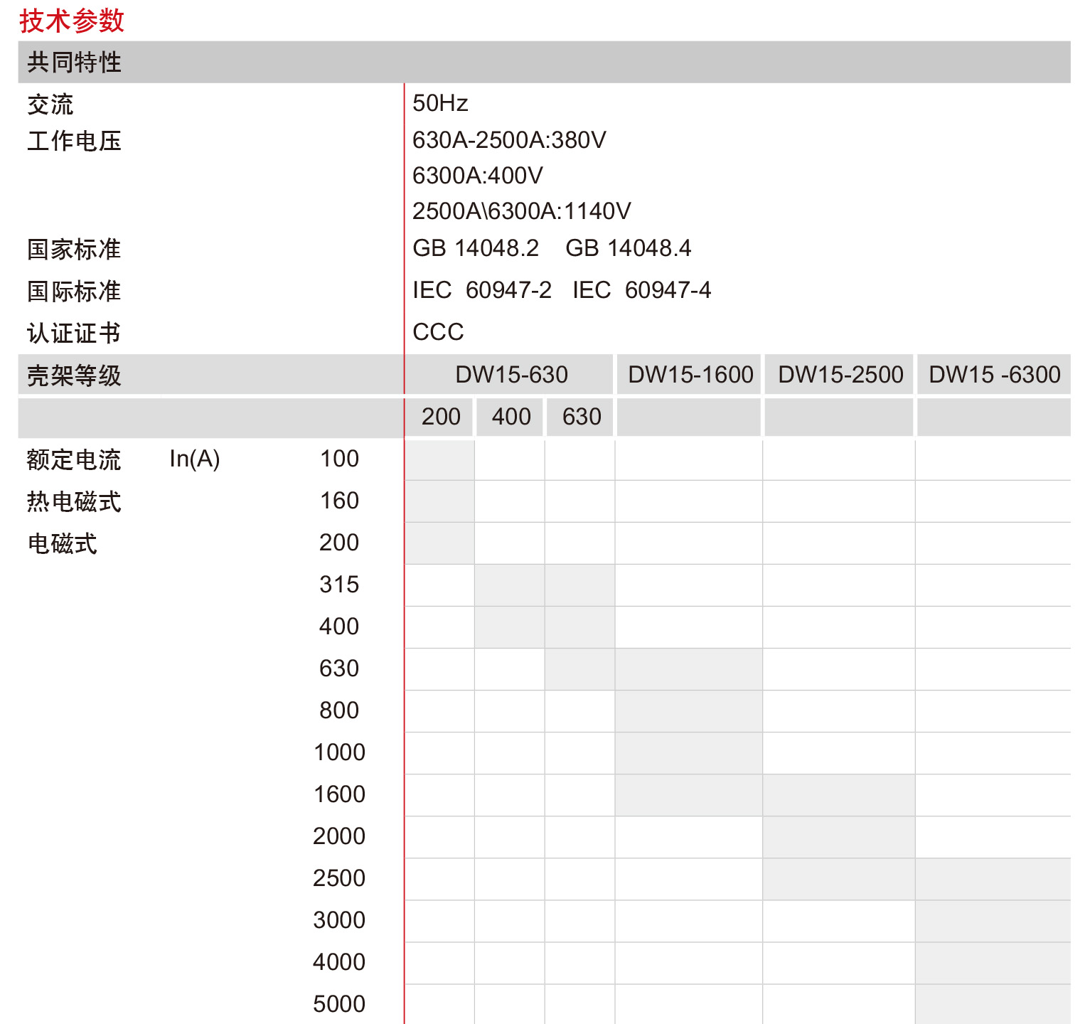 It is suitable for AC 50Hz distribution network circuit with rated working voltage 400V and rated current 100A-5000A and below for distribution of electric energy and protection of lines and power supply equipment to prevent risks from any fault such as overload, undervoltage, short circuit and grounding.