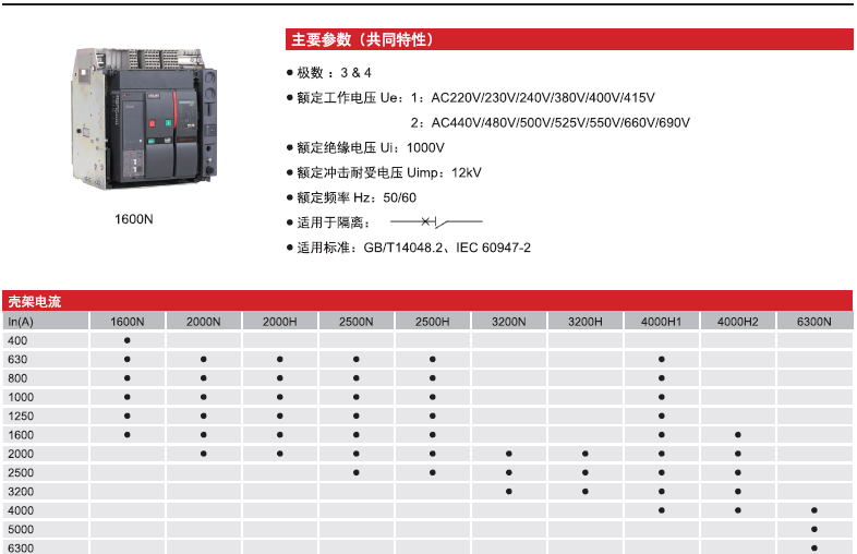 CDW9 series air circuit breaker has rated current ranging from 630A to 6300A and rated operating voltage AC 400V/415V, 690V, mainly suitable for AC 50Hz/60Hz power distribution network for the distribution of power energy and for the protection of lines and power equipment to prevent risks caused by faults such as overload, undervoltage, short circuit, and single-phase grounding. The circuit breaker can be widely used in the power distribution systems in power stations, factories, mines and modern high-rise buildings, especially in intelligent buildings.