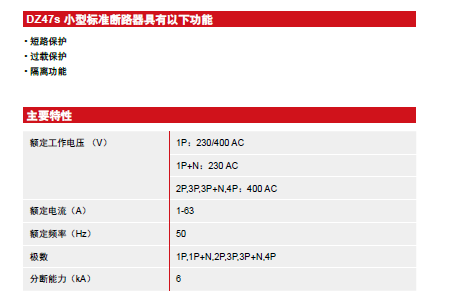 The DZ47s is a miniature protective circuit breaker, suitable for AC 50HZ line with a rated voltage AC230/400V, with overload protection, short circuit protection and control disconnection functions.