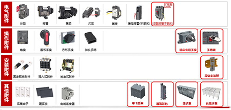 透明防塵蓋、浪涌抑制器、可逆排、輔助觸頭、空氣延時(shí)頭、線圈等附件齊全,應(yīng)有盡有