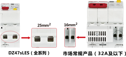 DZ47sLES全系列接線能力均達(dá)到25mm2,接線更方便,可提高工人接線效率,降低人工成本;