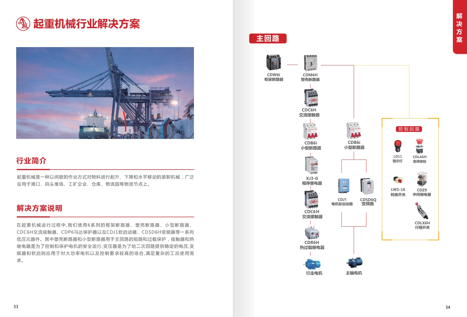 在起重機(jī)械運(yùn)行過程中,我們使用6系列的框架斷路器.塑殼斷路器.小型斷路器、CDC6H交流接觸器、CDP6馬達(dá)保護(hù)器以及CDJ1軟啟動(dòng)器、CDSD6H變頻器等一系列低壓元器件。其中望殼斷路器和小型斷路器用于主回路的短路和過載保護(hù)﹐接觸器和熱r繼電器是為了控制和保護(hù)電機(jī)的安全運(yùn)行,變壓器是為了給二次回路提供穩(wěn)定的電壓,變頻器和軟啟則應(yīng)用于對大功率電機(jī)以及控制要求較高的場合,滿足復(fù)雜的工況使用需求。