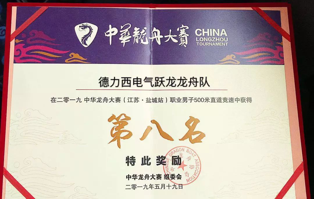2020年8月“德力西電氣躍龍龍舟隊”取得四連冠的好成績