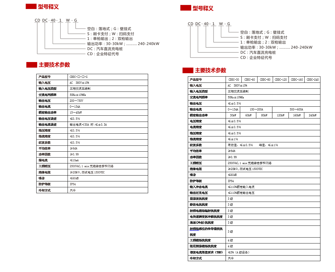 本產(chǎn)品是一體式直流充電樁,主要用于電動(dòng)汽車直流快速充電,產(chǎn)品集功率變換、充電控制、人機(jī)交互控制、通訊、計(jì)費(fèi)計(jì)量等于一體,具有良好的防塵、防水功能,防護(hù)等級(jí)達(dá)到IP54,可在室內(nèi)(室外需配防雨棚)安全的運(yùn)營和維護(hù)。充電樁的功率變換單元遵循模塊化設(shè)計(jì)原則,可以靈活配置成30kW 到 240kW 的功率輸出,滿足不同容量的電動(dòng)汽車充電需求,產(chǎn)品系列涵蓋了單槍輸出、雙槍輪充、均充模式,是快速直流充電的最佳選擇。